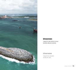Infraestrutura Imagem do cais externo e de sua bacia de evolução de navios Infrastructure Image of the outer port and bay for ships Suape 45 anos | 93